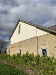 Lime render on old stone gable